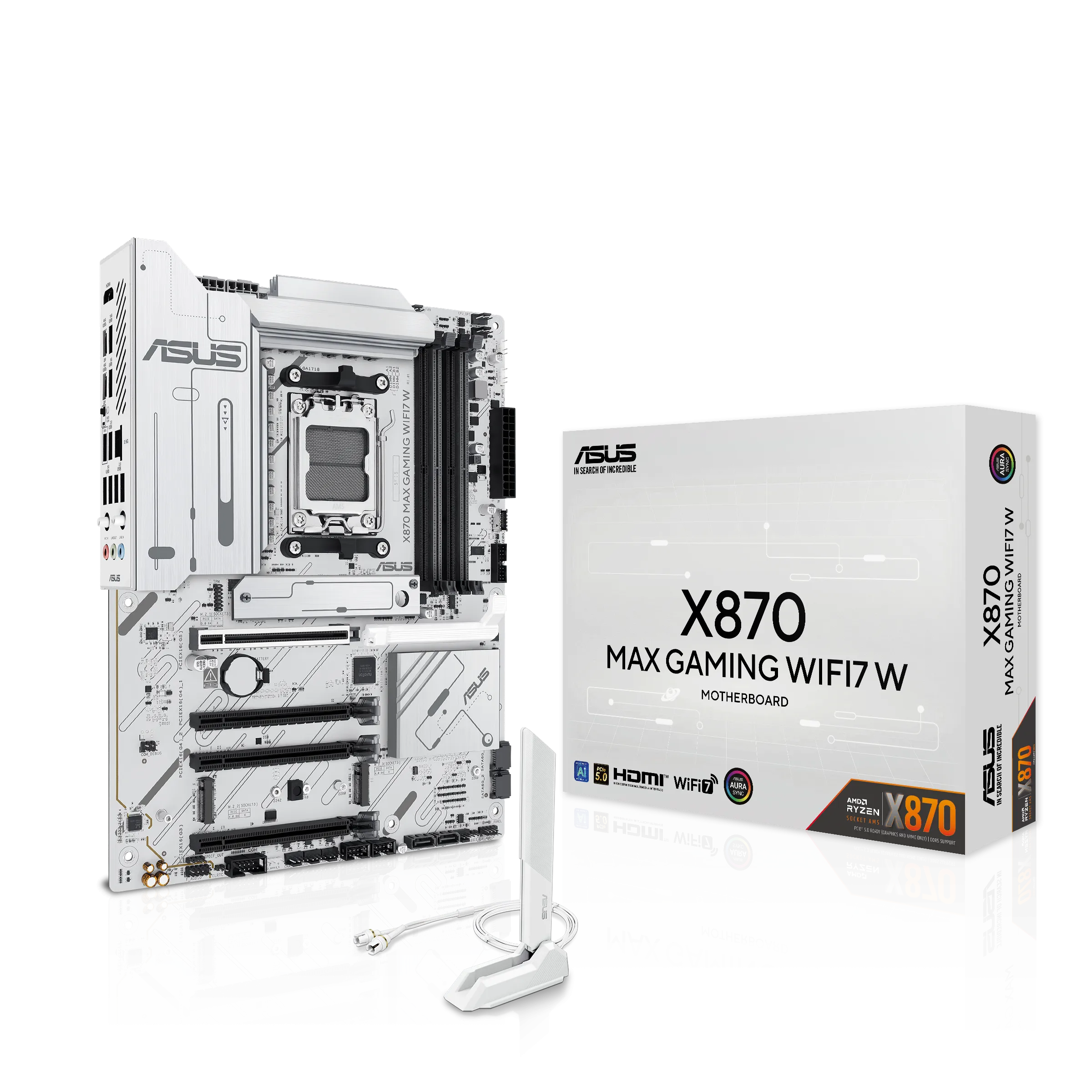 Сист.плата ASUS X870 MAX GAMING WIFI7 W, X870, AM5, 4xDDR5, 4xPCI-E x16, M2, SATA, 2xUSB 4.0, HDMI, WIFI7, WHITE, BOX