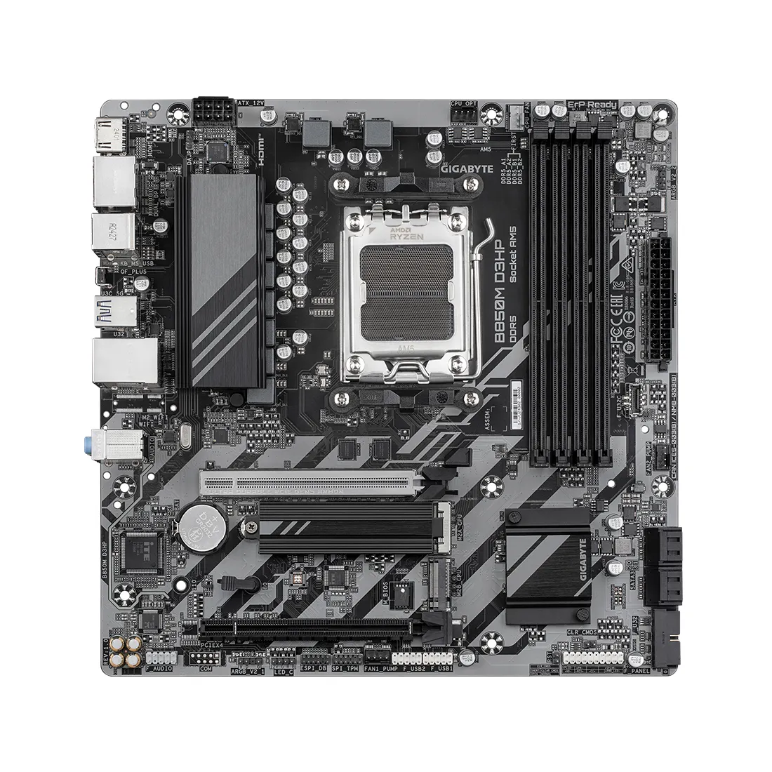 Подсистема памяти DDR5 (2-канальный режим работы): 4 разъёма DIMM для модулей ОЗУ, совместимость с профилями AMD EXPO™