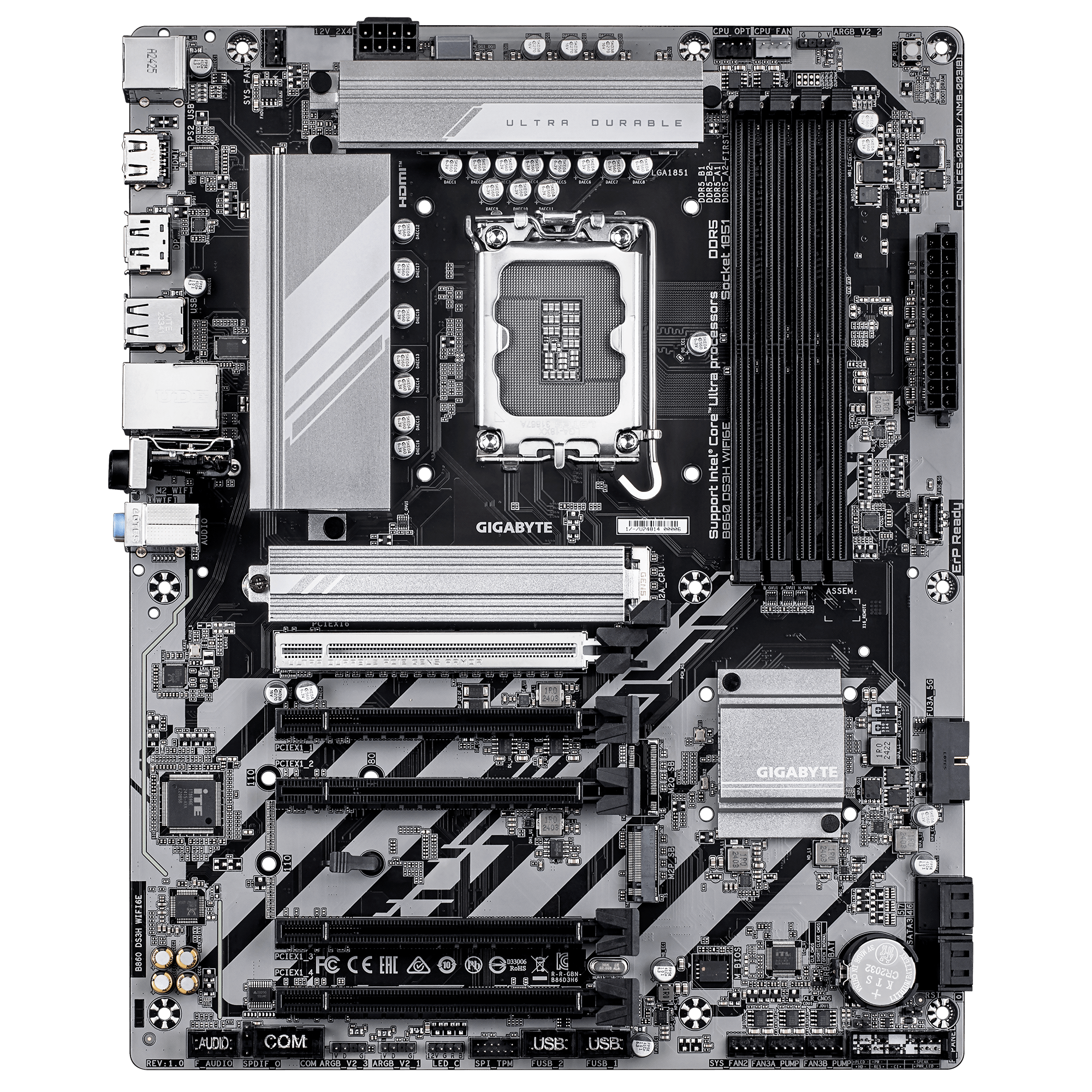 Материнская плата GIGABYTE B860 DS3H WIFI6, LGA1851, 4xDDR5, PCIe5.0, HDMI+DP, 2xM.2, 2.5Gb LAN, ATX