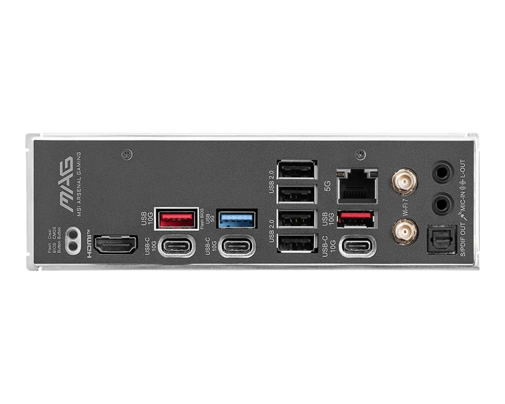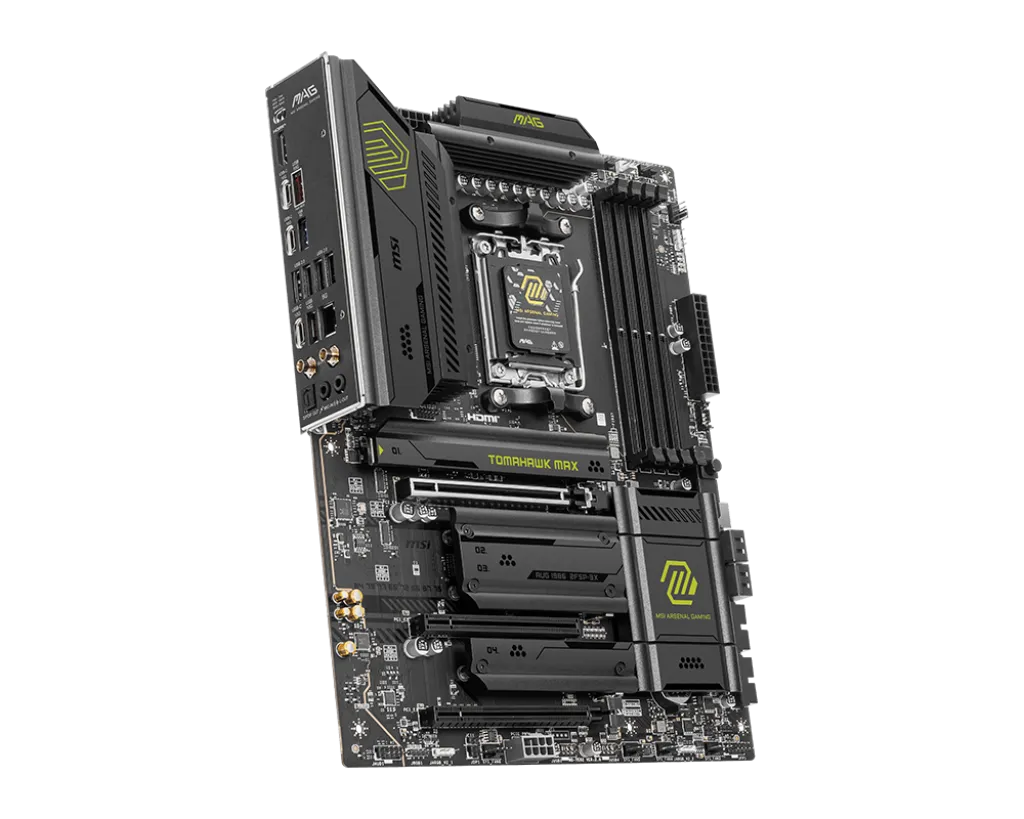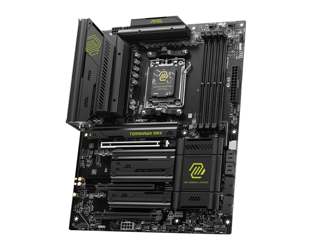 MAG B850 TOMAHAWK MAX WIFI — это материнская плата для геймеров, которая обеспечивает стабильную, долговечную и удобную для самостоятельной сборки платформу для их ПК. Благодаря поддержке Wi-Fi 7, 5G LAN, USB 20 Гбит/с, PCIe 5.0, дополнительному питанию PCIe и эксклюзивным функциям EZ DIY, она готова к работе с процессорами AMD Ryzen™ 9000 серии.