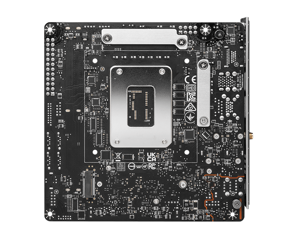 Экранированный разъём PCIe x16 : Металлическая пластина под разъемом PCIe x16 на тыльной стороне печатной платы (усиление прочности конструктива)