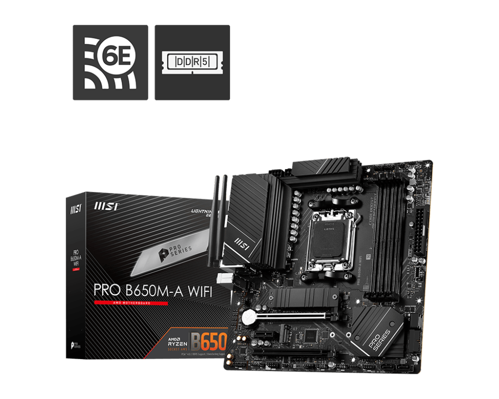 Материнская плата MSI PRO B650M-A WIFI AM5 B650 4xDDR5 4xSATA3 RAID 2xM.2 HDMI DP mATX
