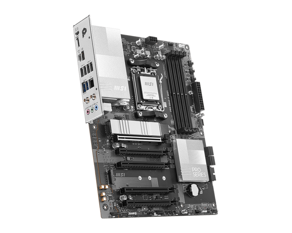 PRO B840-P WIFI отличается лаконичным дизайном и выполнена в серебристом цвете, который прекрасно подходит как для белых, так и для чёрных сборок ПК. Плата включает в себя множество уникальных функций MSI, таких как Wi-Fi 7 с EZ Antenna, 2.5G LAN и PCIe 4.0 M.2 с EZ M.2 Shield Frozr II, что делает её идеальной для процессоров AMD Ryzen™ 9000 серии.