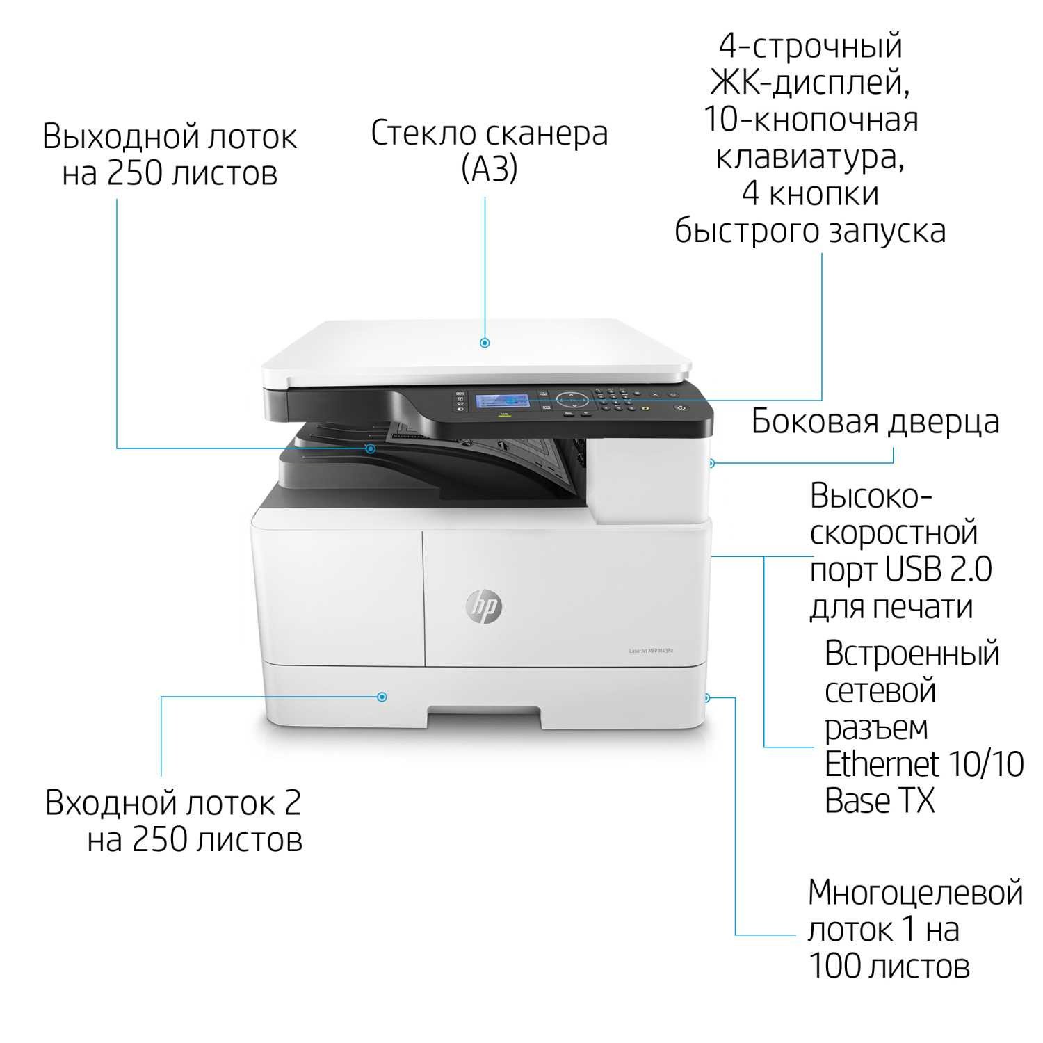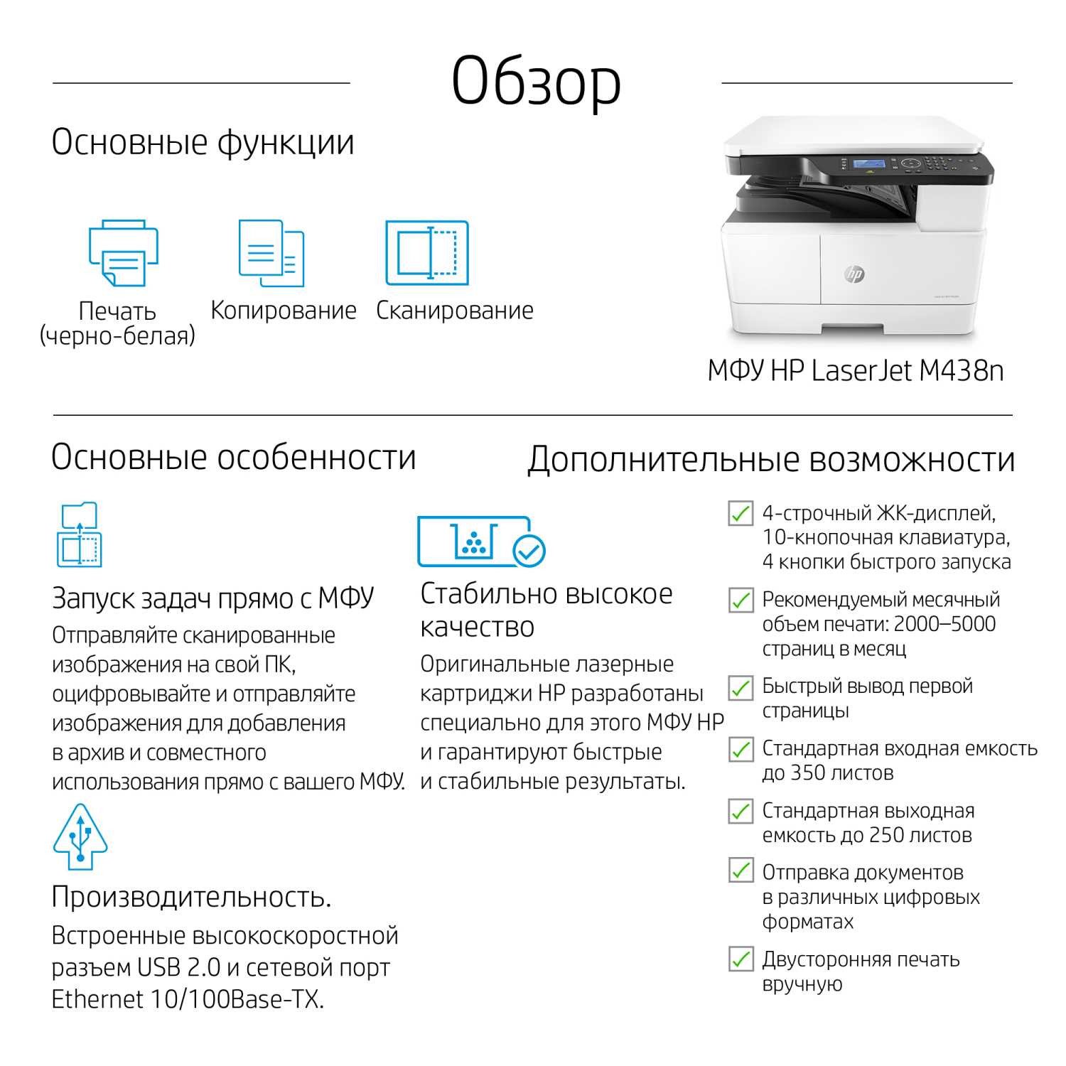 МФУ HP 8AF43A LaserJet MFP M438n Prntr (A3) Printer/Scanner/Copier, 1200 dpi, 22/12 ppm (A4/A3), 256 MB, 600 MHz, 100+250 tray, USB+Ethernet, Duty 50K A4