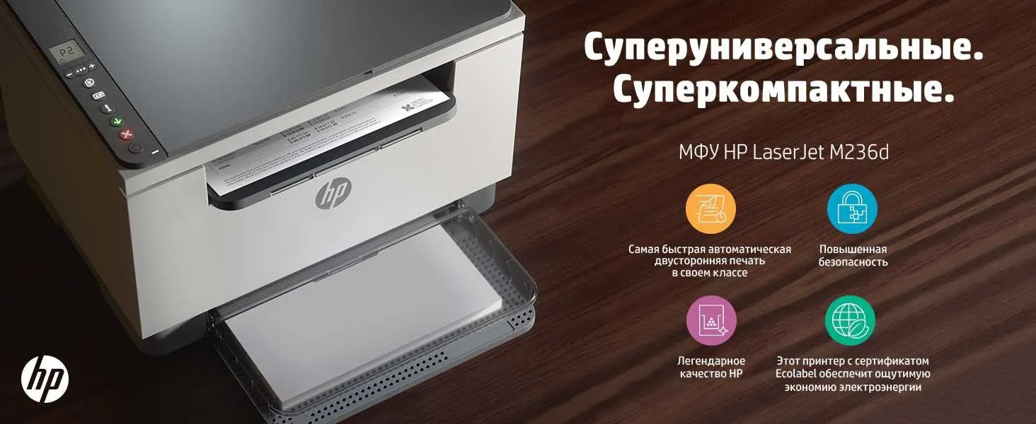 МФУ HP LaserJet MFP M236d (A4) Printer/Scanner/Copier/ 600 dpi 29 ppm 64 MB 500 MHz 150 pages tray Print Duplex USB Duty cycle 20 000 pages
