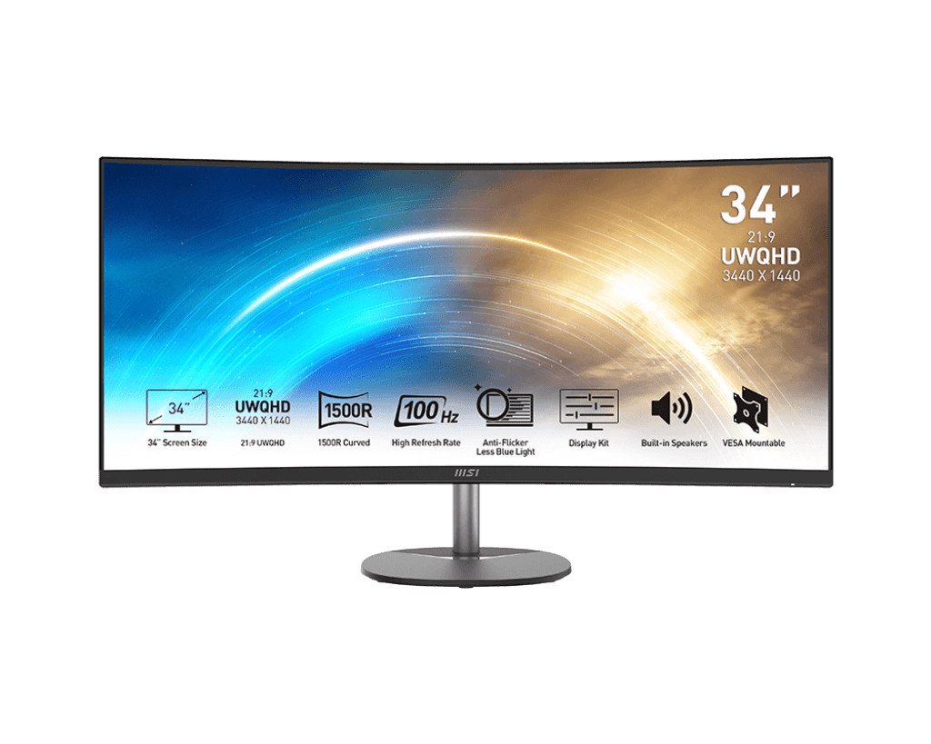 Монитор 34" MSI PRO MP341CQ VA 3440x1440 100Hz 1ms 3000:1 1500R 2xHDMI 1xDP 2x2W Black