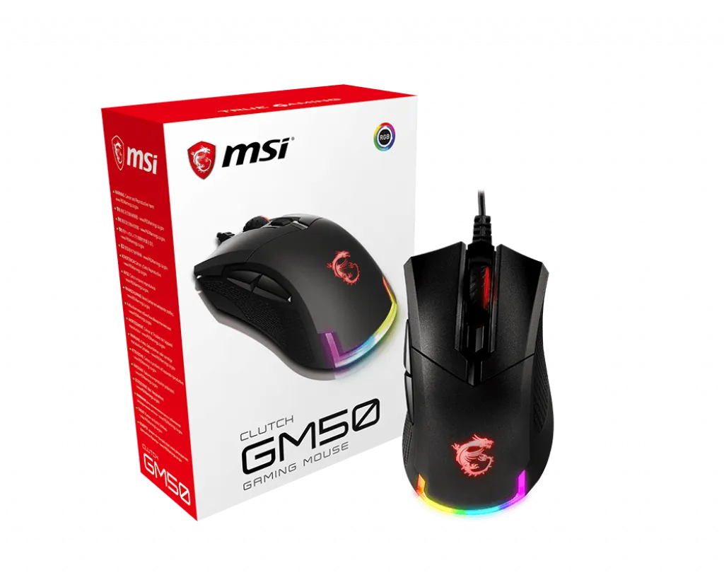 Мышь MSI Clutch GM50 USB2.0/TPE-кабель 2м/Вес 87г./RGB подсветка/Черный