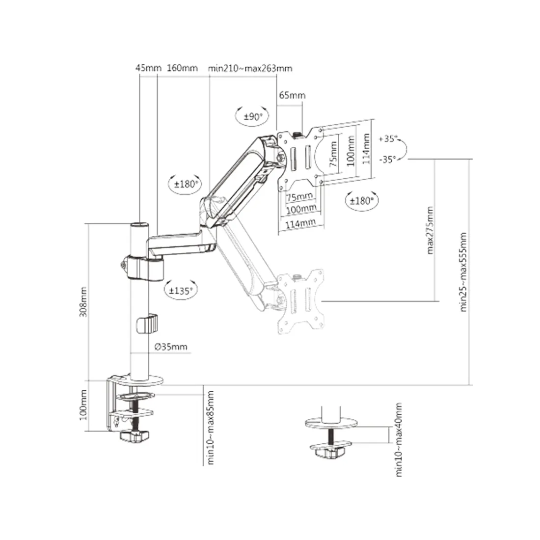 The XG MG-1732 pole-mounted gas spring monitor arm combines sturdy construction with smooth, effortless adjustments, securely holding your display above the desk and freeing up valuable workspace. It’s the perfect solution for creating a tidy and efficient setup at home or in the office. Thanks to the built-in gas spring mechanism, you can easily adjust the monitor to the most comfortable viewing angle. The quick-release VESA plate makes installation or removal fast and simple, while integrated cable management keeps cords neatly organized for a clean look. Best of all, the XG MG-1732 offers excellent value, providing both functionality and affordability that help boost sales and profits.и