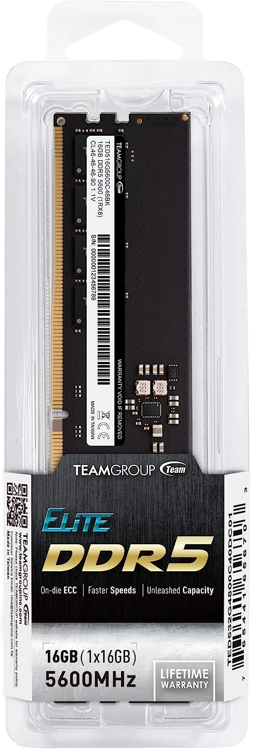 Модуль памяти TEAMGROUP ELITE U-DIMM DDR5 обладает ультравысокой частотой 5600 МГц и объемом 16 ГБ. Стандартное рабочее напряжение уменьшено до 1,1 В, таким образом вы экономите энергию и снижаете нагрузку на сети. Микросхемы управления питанием (PMIC) также были перенесены с материнской платы в ОЗУ для эффективного управления нагрузкой и снижения уровня помех. Данный модуль памяти оснащен встроенной функцией ECC, которая самостоятельно исправляет ошибки ячеек памяти DRAM, что обеспечивает стабильность систем DRAM, использующих DDR5. Так же TEAMGROUP предлагает пожизненную гарантию на свою продукцию.