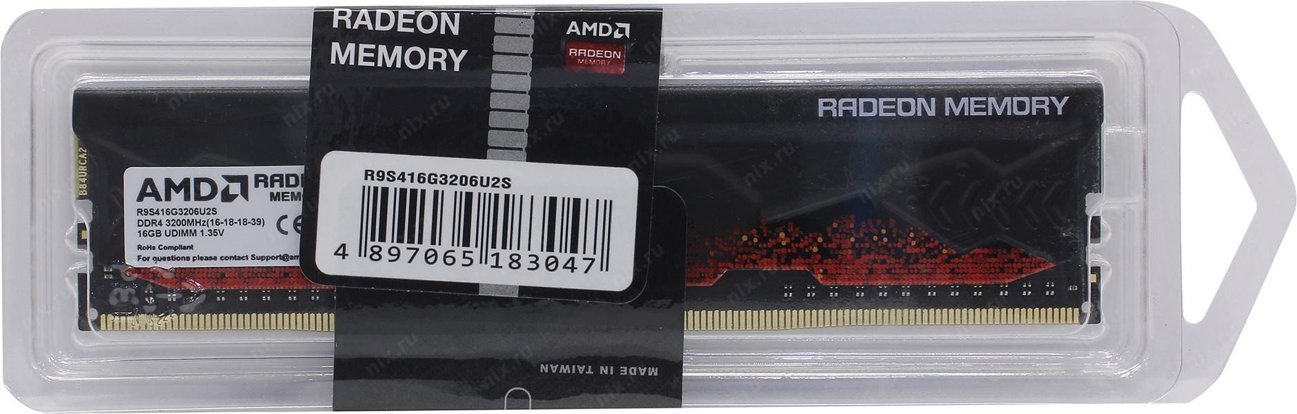 Оперативная память 16GB DDR4 3200MHz AMD Radeon R9 GSB Gaming Memory Heat Shield RTL R9S416G3206U2S