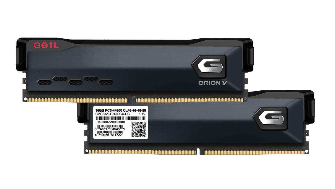 Оперативная память GEIL Orion V – комплект из пары модулей по 16 ГБ поколения DDR5 с ослепительно красивыми радиаторами. Память предназначенна для геймеров, обеспечивает захватывающий игровой процесс и повышает производительность систем. Производительность устройства в видеоиграх увеличивает технология разгона XMP 3.0. Тайминги модулей – 38-44-44-84. Тактовая частота оперативной памяти– 6000 МГц. Новая функция ECC на кристалле улучшает целостность данных, а внедрение локальной регулировки напряжения на базе PMIC (Power Management IC) обеспечивает более широкий диапазон регулировки и настройки напряжения. Напряжение питания памяти 1.25 В. При любых режимах работы ПК модули защищены от избыточного нагрева радиаторами.