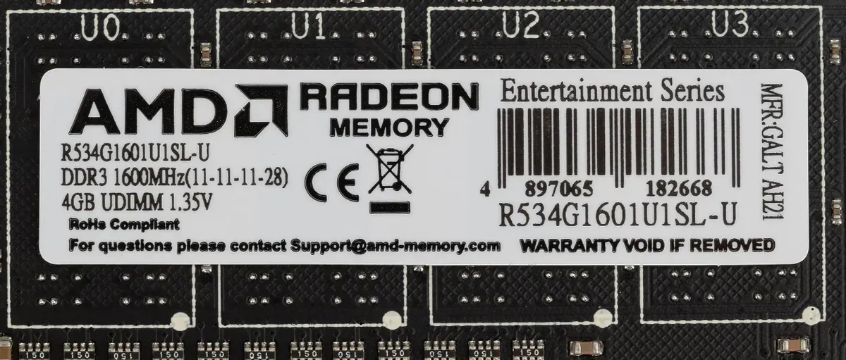 Если компьютер уже не так быстр, как раньше, загрузка «тяжелых» программ и приложений "подвисает" все больше, а комфортная игра становится все менее доступной, тогда вы сможете легко и с минимумом затрат усилий и времени решить это благодаря оперативной памяти AMD Radeon R5 Entertainment Series [R534G1601U1SL-U]. Ведь данная оперативная память форм-фактора DIMM сможет ощутимо увеличить возможности вашего компьютера. AMD Radeon R5 Entertainment Series [R534G1601U1SL-U] выполнена по технологии DDR3L и предоставит вам 4 ГБ оперативной памяти, способной работать на частотах от 800 МГц до 1600 МГц. Высота этой карты всего 30 миллиметров, а напряжения для питания потребуется только 1.35 В. Просто вставьте данную карту в нужный слот и насладитесь тем, насколько быстрее и лучше стал работать уже такой полюбившийся и привычный для вас компьютер.
