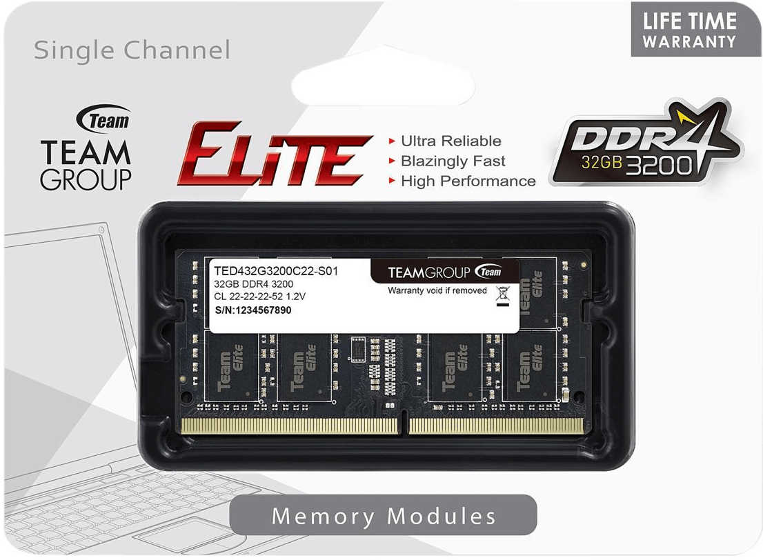 Оперативная память для ноутбука 32GB DDR4 3200Mhz Team Group ELITE станет отличным выбором для модернизации и повышения производительности Вашего ноутбука. Модуль памяти выпущен в форм-факторе SO-DIMM. Тип памяти – DDR4. Объем памяти– 32 ГБ. Его рабочая частота – 3200 МГц. Эта планка отличается прекрасной пропускной способностью. Она оперативно обменивается данными с другими элементами системы, обеспечивая высокое быстродействие компьютера. Кроме этого, модель обладает высокой надежностью и стабильностью работы, что достигается за счет применения первоклассных компонентов в конструкции и передовых технологий для обработки и хранения данных. Напряжение питания 1.2 В подчеркивает низкий уровень нагрева и экономичное потребление энергии.