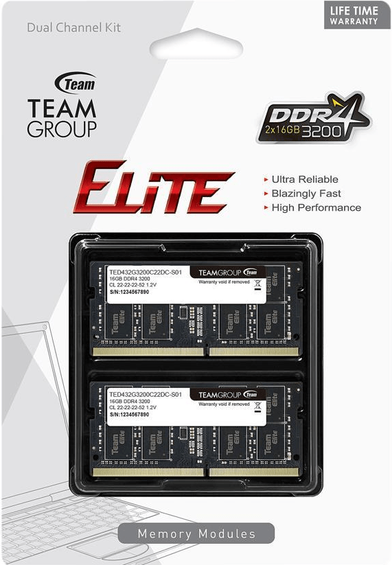 Оперативная память для ноутбука 32GB Kit (2x16GB) DDR4 3200Mhz TG ELITE SO-DIMM TED432G3200C22DC-S01