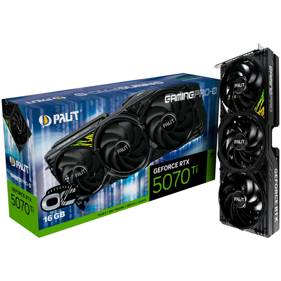 PALIT GeForce RTX 5070 Ti GamingPro-S OC 16GB GDDR7 256 bit, 1x HDMI 2.1b, 3x DP 2.1b, 3 Fan, 1x 16-pin pwr connector, 750W, 331.9 x 127.1 x 49.7 mm, NE7507TS19T2-GB2031U