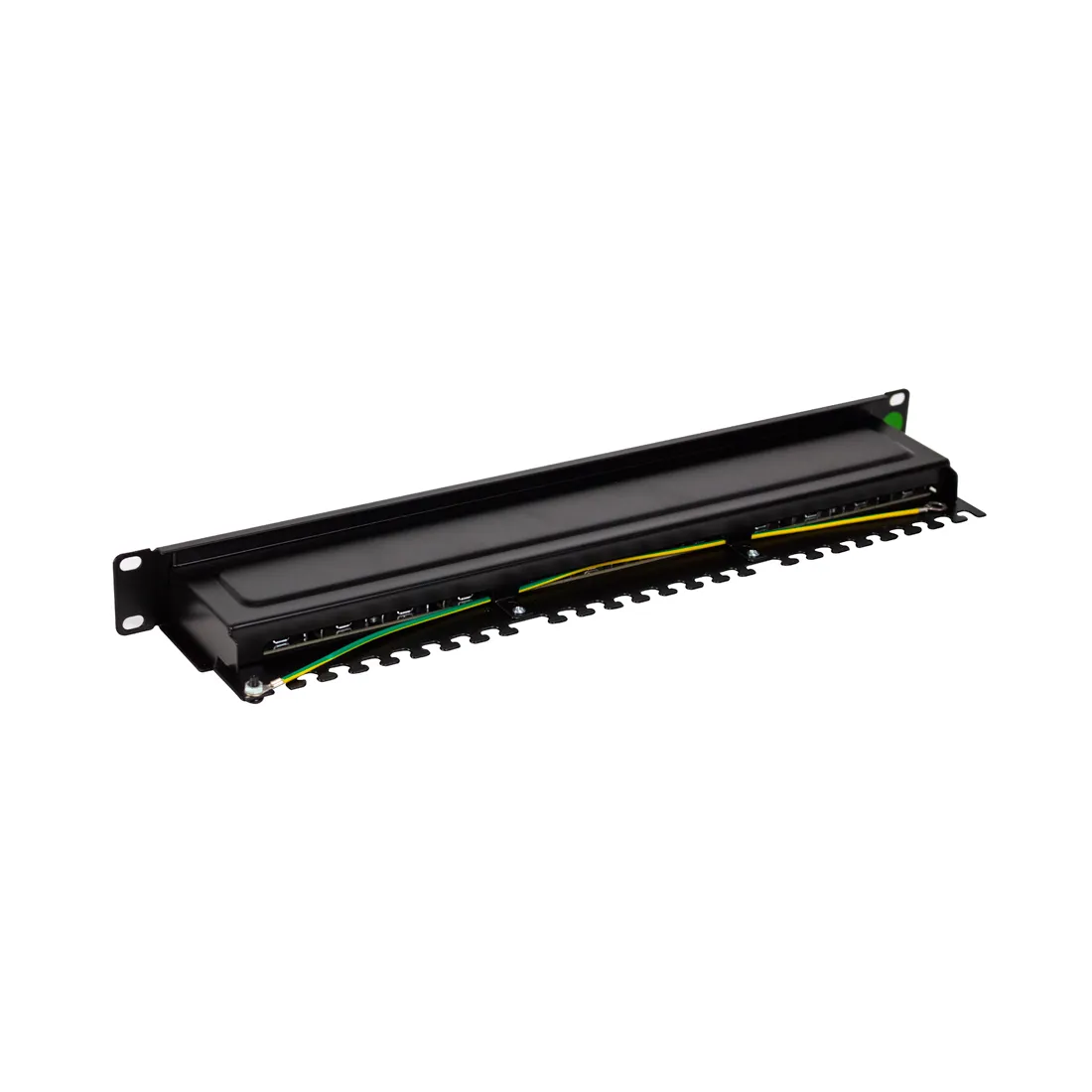 Коммутационная 24 портовая панель, необходимая для консолидации информационных кабелей этажной (горизонтальной) подсистемы СКС. Служит для удобства коммутации и администрирования СКС. Коммутационная панель (patch panel) состоит из 24 портов RG 45 с фронтальной стороны и разъёмов DUAL IDC с тыльной стороны.