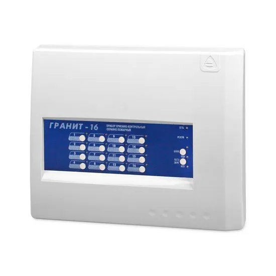 Гранит-16 — прибор приемно-контрольный и управления охранно-пожарный, предназначенный для построения комплексных систем безопасности на средних и крупных объектах. Устройство обеспечивает контроль состояния шлейфов сигнализации, обработку тревожных событий и управление исполнительными устройствами оповещения.