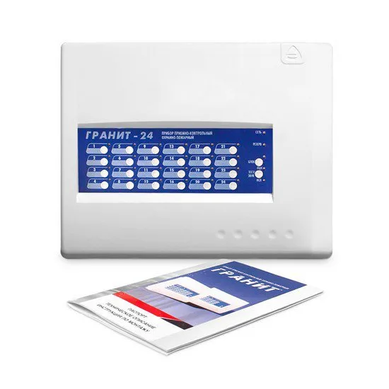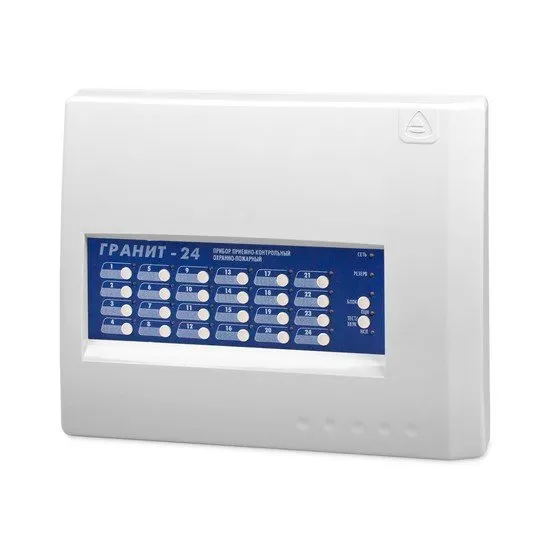 Гранит-24 — прибор приемно-контрольный и управления охранно-пожарный, предназначенный для построения комплексных систем безопасности на средних и крупных объектах. Обеспечивает контроль состояния шлейфов сигнализации, обработку тревожных событий и управление внешними исполнительными устройствами.