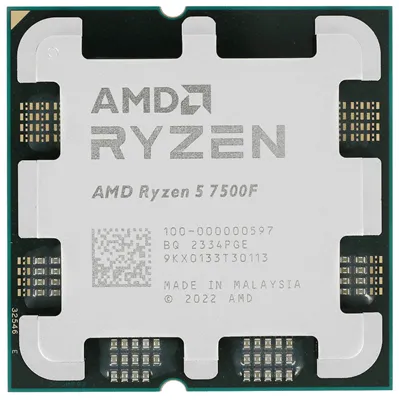 Процессор AMD Ryzen 5 7500F 3,7Гц (5,0ГГц Turbo) Zen4 6-ядер 12-потоков, 6MB L2, 32MB L3, 65W-85W, AM5 100-000000597