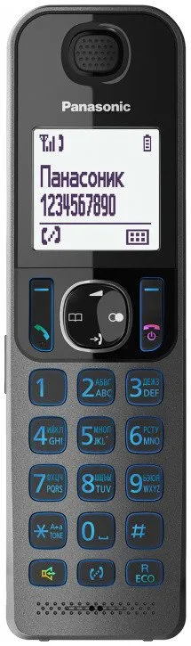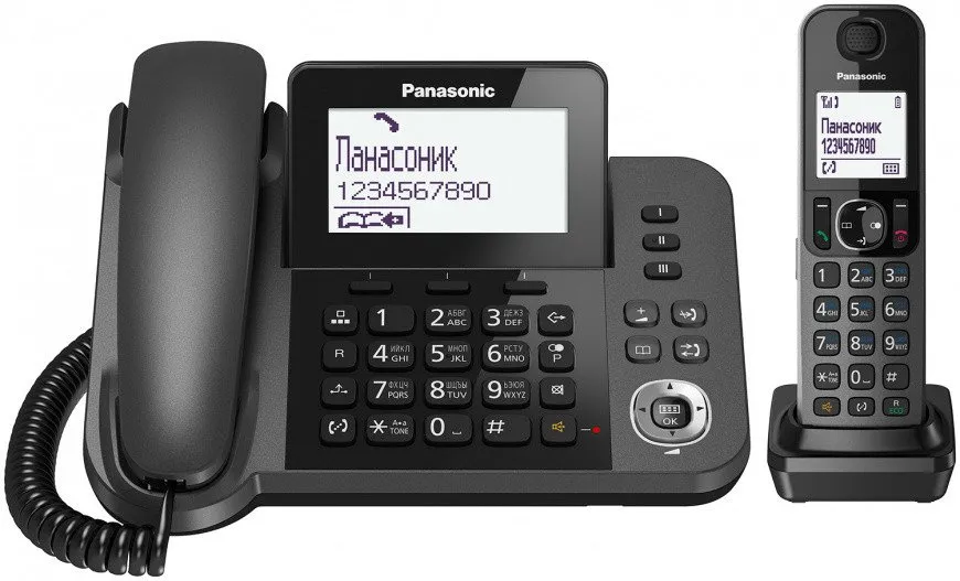 Цифровой беспроводной телефон с 1 проводной трубкой и 1 беспроводной трубкой. 3,4-дюймовый большой наклонный дисплей на базовом блоке. Функция резервного питания. Специальная кнопка блокировки звонков на базовом блоке.