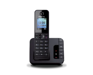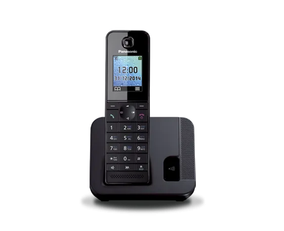 Цифровой беспроводной телефон с 1 проводной трубкой и 1 беспроводной трубкой. 3,4-дюймовый большой наклонный дисплей на базовом блоке. Функция резервного питания. Специальная кнопка блокировки звонков на базовом блоке.