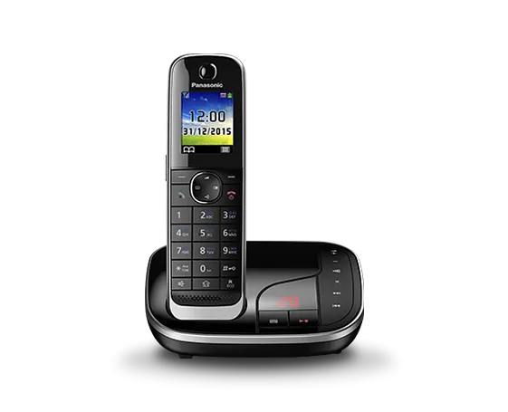 Цифровой беспроводной телефон с 1 проводной трубкой и 1 беспроводной трубкой. 3,4-дюймовый большой наклонный дисплей на базовом блоке. Функция резервного питания. Специальная кнопка блокировки звонков на базовом блоке.