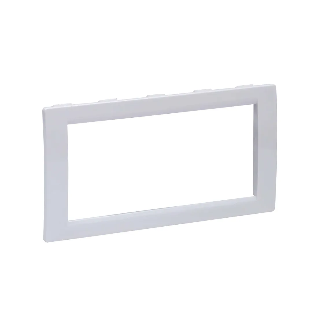 Рамка универсальная 4-модульная для ЭУИ. Назначение: монтаж ЭУИ серий "Viva" и типоразмера 45х45 мм в пластиковые короба серии "In-liner Front", алюминиевые короба и колонны "Aero", лючки и напольные башенки BUS. Характеристики: материал – АБС-пластик; универсальная − устанавливается поверх каркасов: F0000M, F0000MB, F0000A, F0000L; 2-модульная рамка устанавливается поверх одного 2-модульного каркаса; 4-модульная рамка − поверх двух 2-модульных каркасов; 6-модульная рамка − поверх трех 2-модульных каркасов.