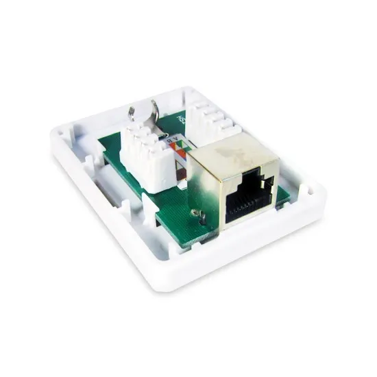 Для внешнего монтажа. Корпус настенной розетки состоит из основания и крышки. Конструкция выполнена из высококачественного пластика. Внутри расположен модуль RJ-45, FTP, стандарта категории 5e. Крепёжные элементы для монтажа включены в комплект. Корпус крепится к поверхности при помощи двух винтов и шурупов.
