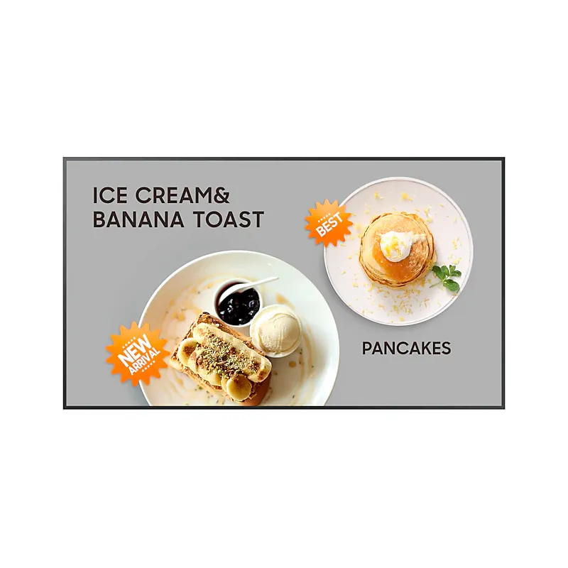 Элегантный и простой в дизайне, данный ЖК экран с панелью уровня A отличается высокой надёжностью и длительным сроком службы, обеспечивая высококачественное изображение. Он поддерживает вывод аудио и видео, а также трансляцию мультимедийного контента и рекламы.