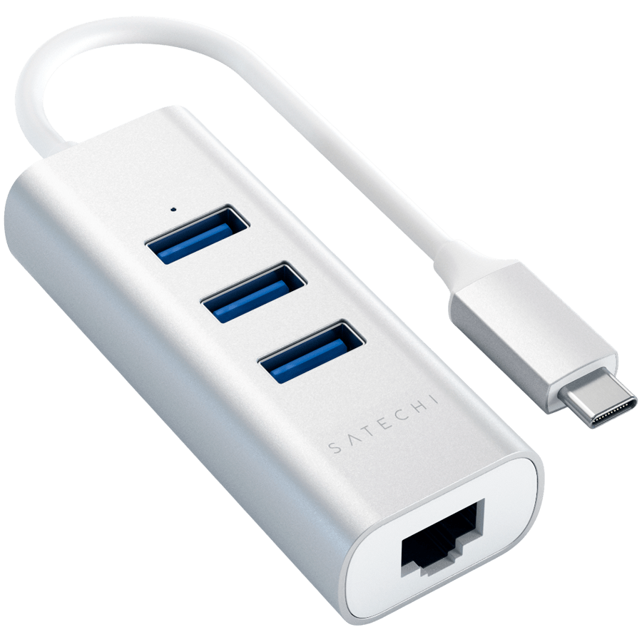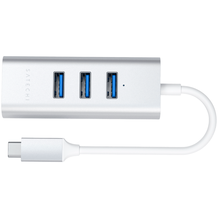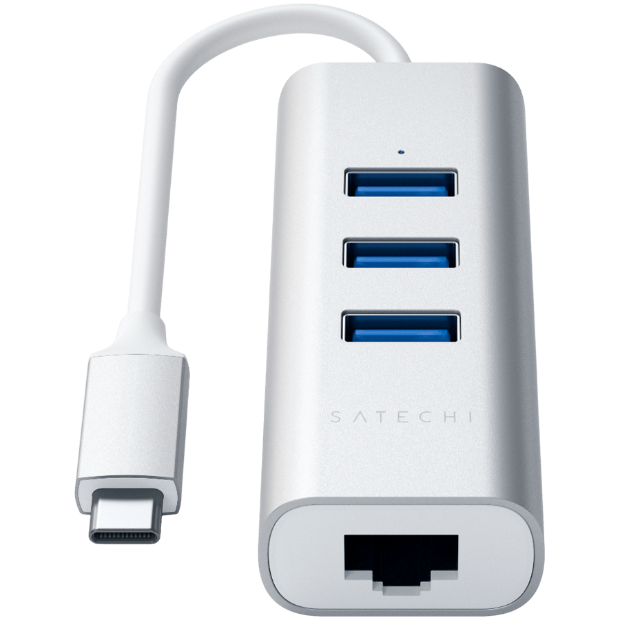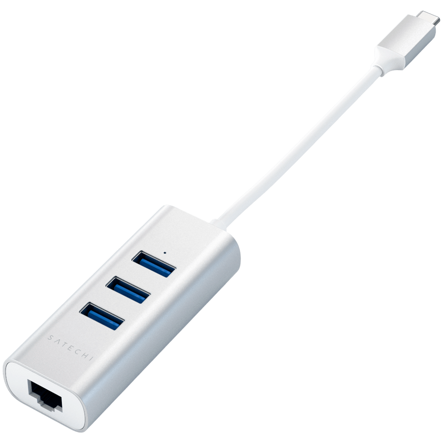 SATECHI Type-C 2-in-1 USB 3.0 Aluminum 3 Port Hub and Ethernet Port Silver