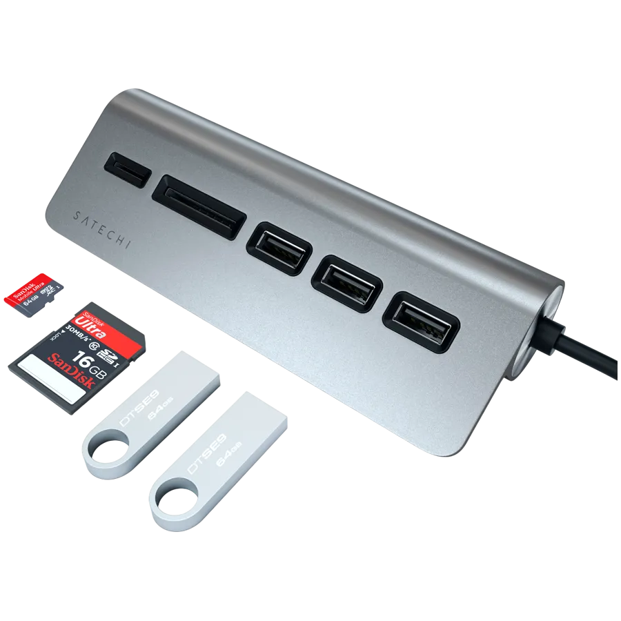 SATECHI Type-C Aluminum USB 3.0 Hub & Card Reader Space Gray