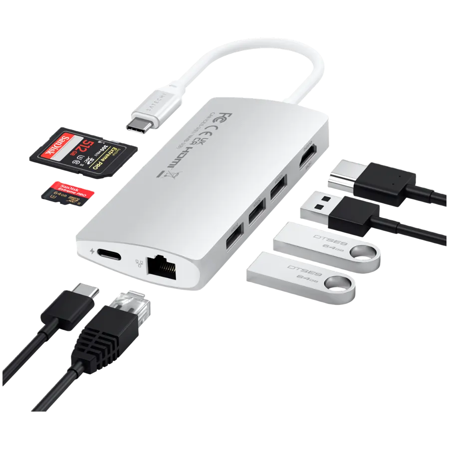 SATECHI Type-C Multi-Port Adapter 4K with Ethernet V2 Silver
