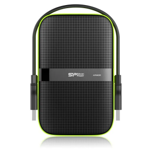 Silicon Power Armor - A60 1TB Portable HDD USB 3.2 Gen1 Black, Shockproof MIL-STD 810G Method 516.6 Procedure IV, Water-resistant IPX4, LED light