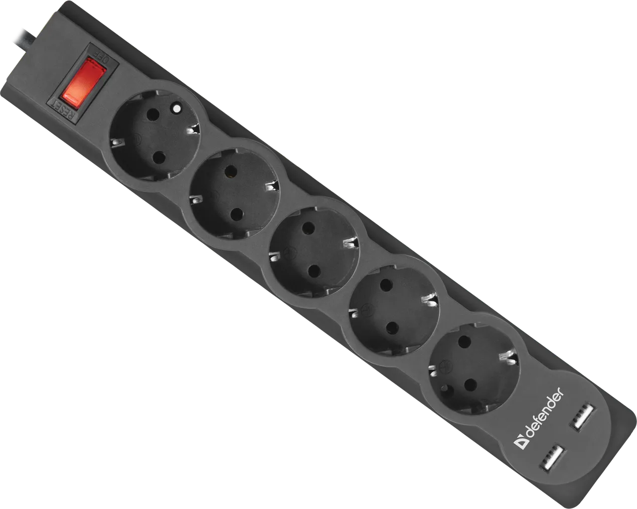 Сетевой фильтр Defender DFS 751 5 розеток, 1.8 м (защита от ВЧ и импульсных помех, USB зарядка 2.1А)