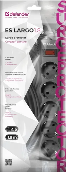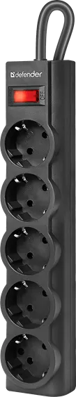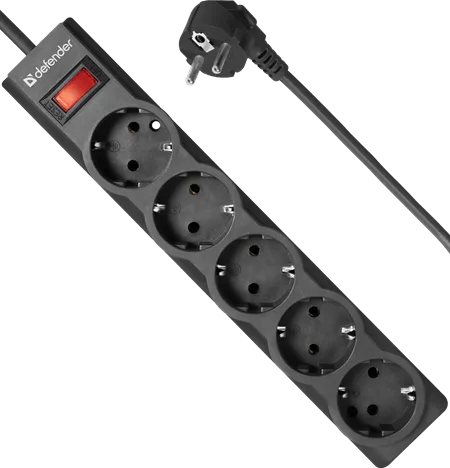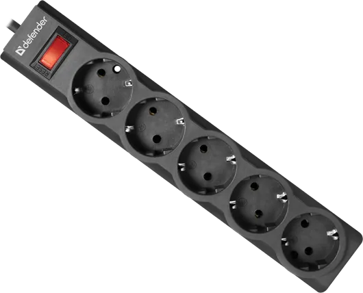 Сетевой фильтр Defender ES 1,8 метра, 5 розеток, Предохранитель, Черный, original