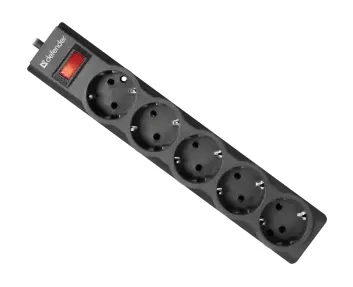 Сетевой фильтр Defender ES 3 метра, 5 розеток, Предохранитель, Черный, original