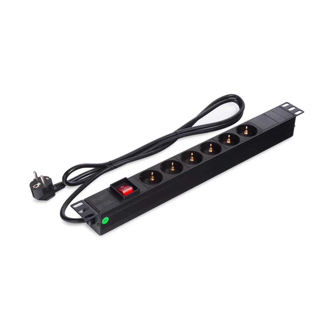 Блок розеток для 19"-дюймовых конструктивов, выполнен в корпусе из высокопрочного пластика. Розетки расположены горизонтально, на лицевой части блока установлен выключатель. Совместимо со всеми линейками 19" (дюймового) монтажного оборудования. Блок сетевых розеток предназначен для распределения электропитания и защиты компьютеров, электронной техники и активного оборудования в телекоммуникационных шкафах и стойках. Тип вилки подключения сетевого фильтра - Schuko.