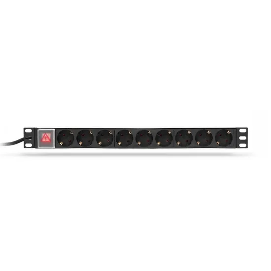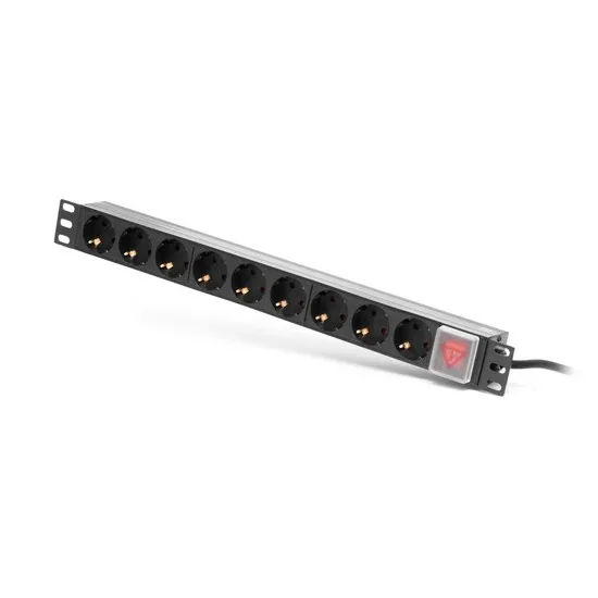 Блок розеток для 19"-дюймовых конструктивов, выполнен в корпусе из высокопрочного пластика. Розетки расположены горизонтально, на лицевой части блока установлен выключатель. Совместимо со всеми линейками 19" (дюймового) монтажного оборудования. Блок сетевых розеток предназначен для распределения электропитания и защиты компьютеров, электронной техники и активного оборудования в телекоммуникационных шкафах и стойках.Тип вилки подключения сетевого фильтра - Schuko.