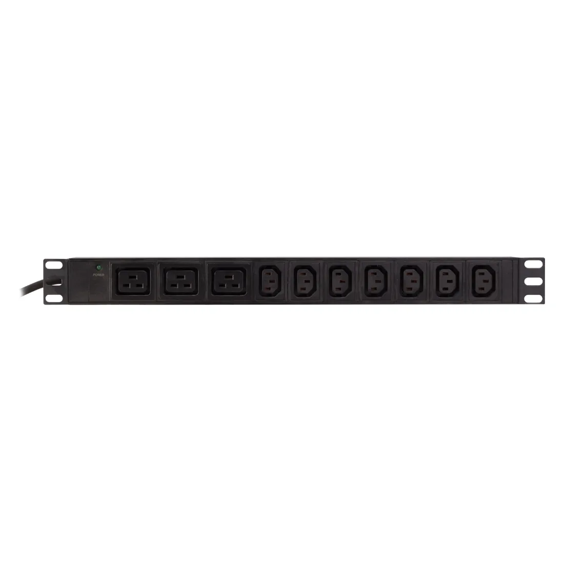 Блок розеток для 19"-дюймовых конструктивов, выполнен в корпусе из высокопрочного пластика. Розетки расположены горизонтально, на лицевой части блока установлен выключатель. Совместимо со всеми линейками 19" (дюймового) монтажного оборудования. Блок сетевых розеток предназначен для распределения электропитания и защиты компьютеров, электронной техники и активного оборудования в телекоммуникационных шкафах и стойках.