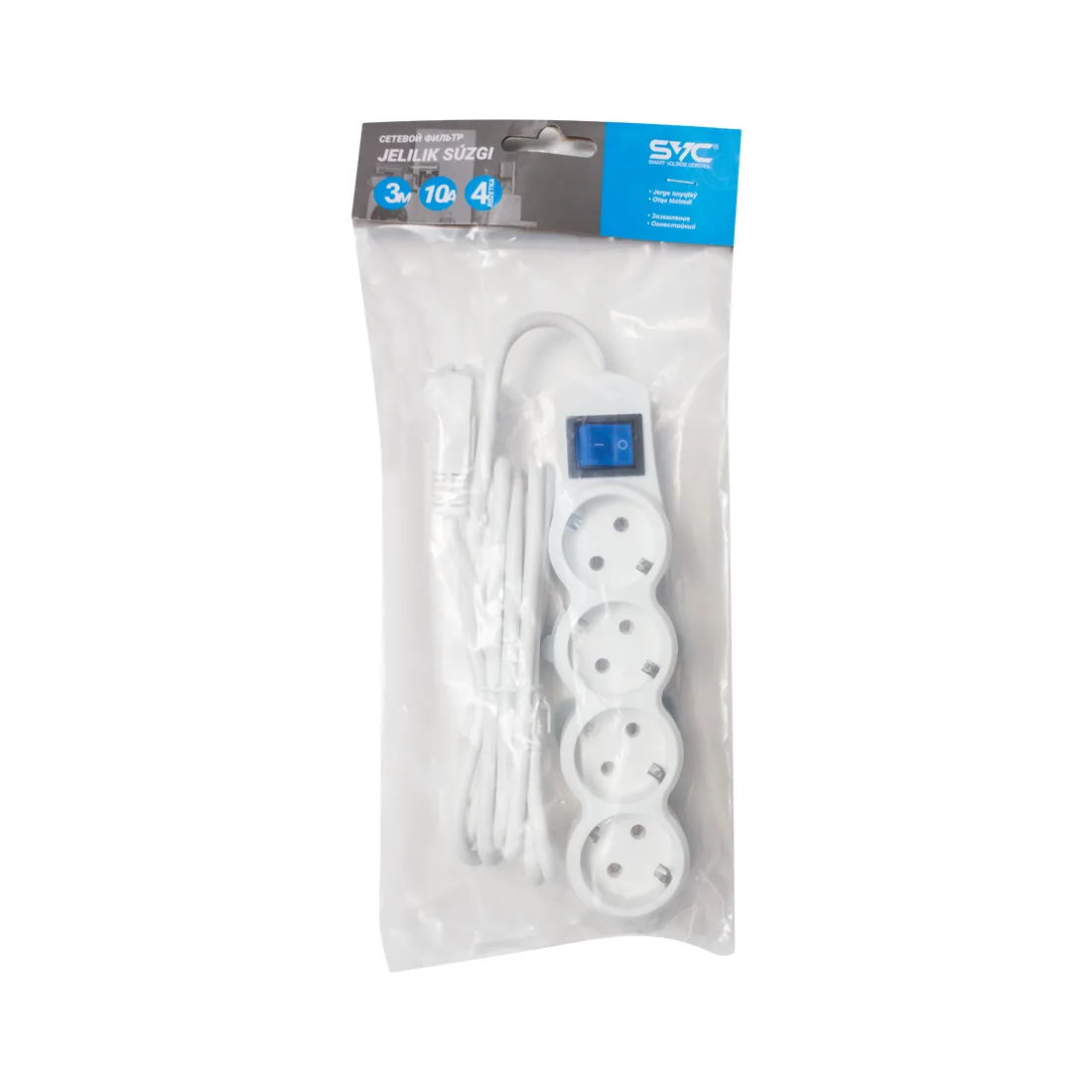 Сетевой фильтр SVC предназначен для подключения электроприборов в местах, удалённых от стационарных розеток и осуществляет защитную функцию от короткого замыкания и перепадов напряжения. Розеточный блок изготовлен из ударопрочной пластмассы.