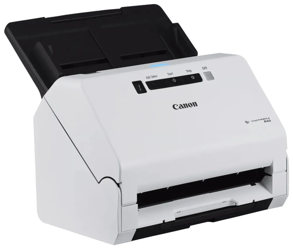 Сканер imageFORMULA R40 (Протяжный, цветной, двусторонний, А4, 600x600 dpi, АПД 60 листов, 40 стр./мин/80 изобр./мин., ежедневный объем - 4000 листов, USB 2.0)
