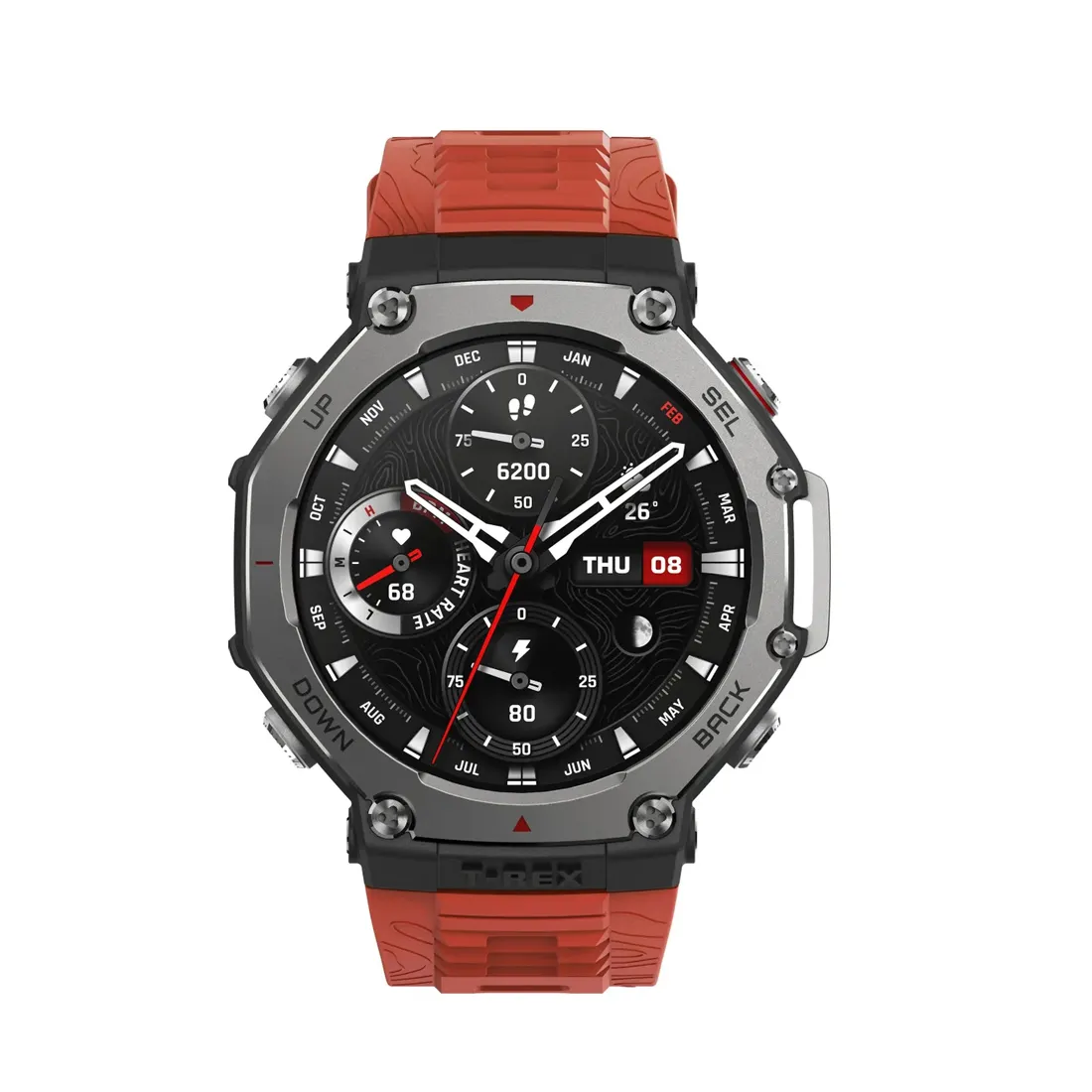 Amazfit T-Rex 3 обладает большим экраном, который облегчает просмотр, жизненно важных для вашего приключения, данных — будь то под солнцем пустыни, городскими фонарями или в походе при свете луны. Матовое покрытие часов и безель с металлическим напылением дополнены силиконовым, не впитывающим пот, ремешком, который сохраняет часы сухими и удобными, пока вы противостоите стихии.