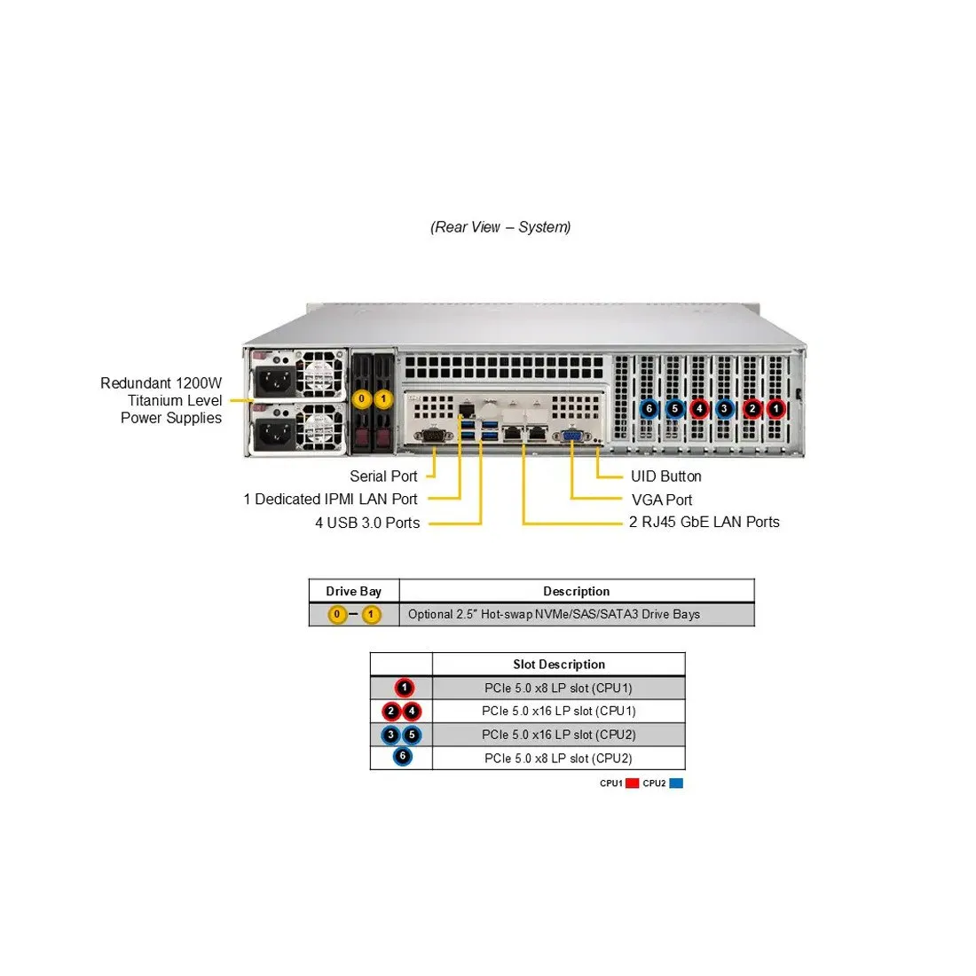 • 1 × RJ45 1 GbE BMC LAN порт (IPMI, управление через AST2600).