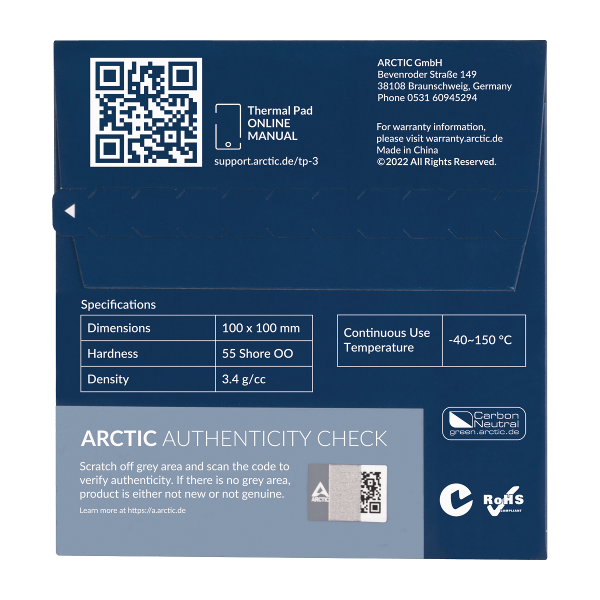 Термопрокладка ARCTIC TP-3, ACTPD00052A, 100x100х0.5mm, 3.4g/cm3