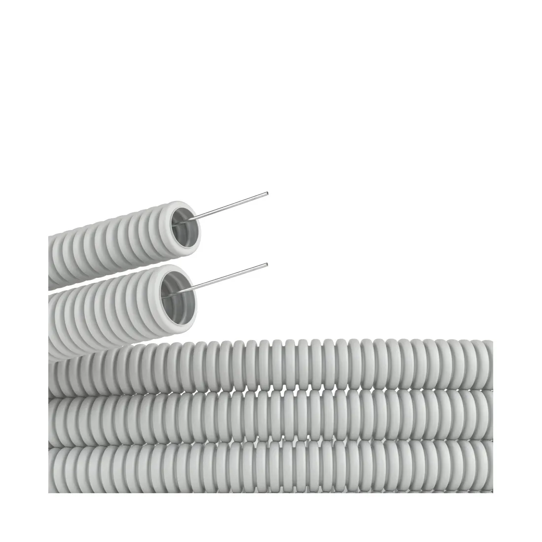 Гибкая гофрированная труба из ПВХ надежно защищает кабель от механических воздействий. Используется для прокладки электрического, компьютерного телефонного кабелей. Труба этого типа прокладывается в стенных штробах, в пустотах фальш-потолков и фальш-стен, в стяжке полов или под фальш-полами. Проволочная протяжка облегчает прокладку кабеля в трубе.