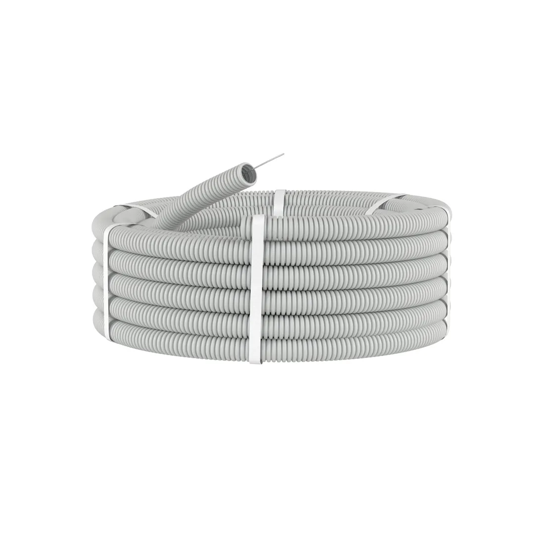 Гибкая гофрированная труба из ПВХ надежно защищает кабель от механических воздействий. Используется для прокладки электрического, компьютерного телефонного кабелей. Труба этого типа прокладывается в стенных штробах, в пустотах фальш-потолков и фальш-стен, в стяжке полов или под фальш-полами. Проволочная протяжка облегчает прокладку кабеля в трубе.