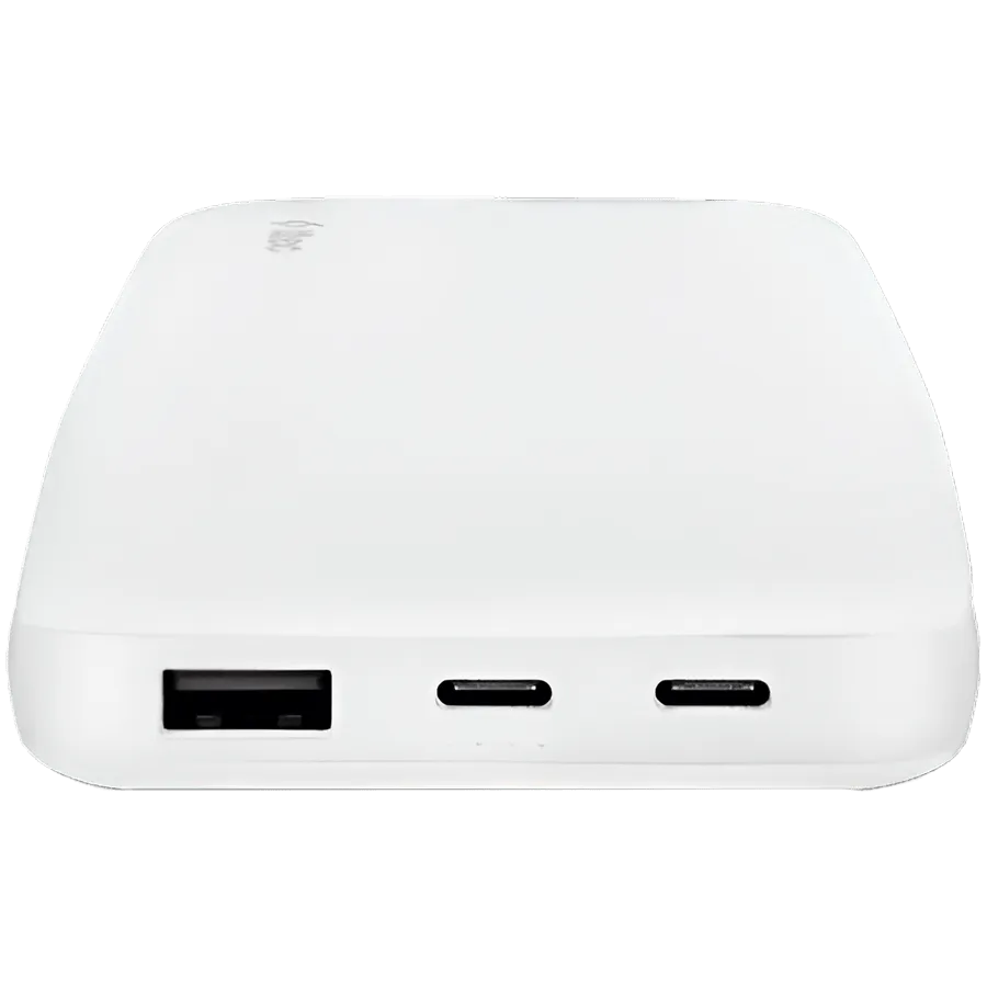 Универсальный внешний аккумулятор ёмкостью 10000 mAh с поддержкой быстрой зарядки до 22.5 W. Оснащён двумя встроенными кабелями (USB-C и Lightning), цифровым дисплеем уровня заряда и несколькими портами для одновременной зарядки устройств в дороге.