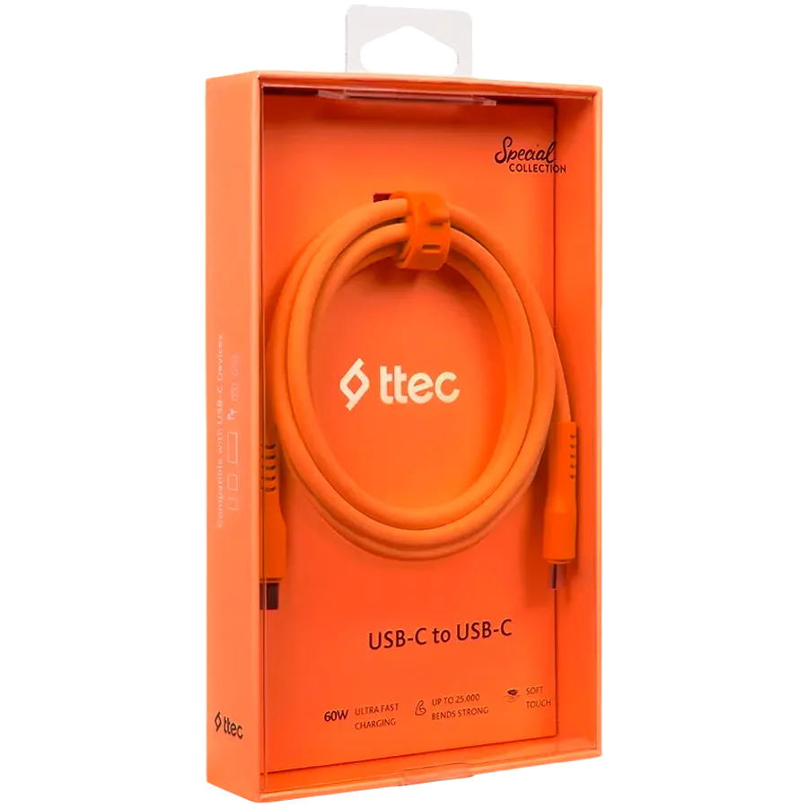 ttec USB-C - USB-C 120cm 60W PD/QC Neon Cable