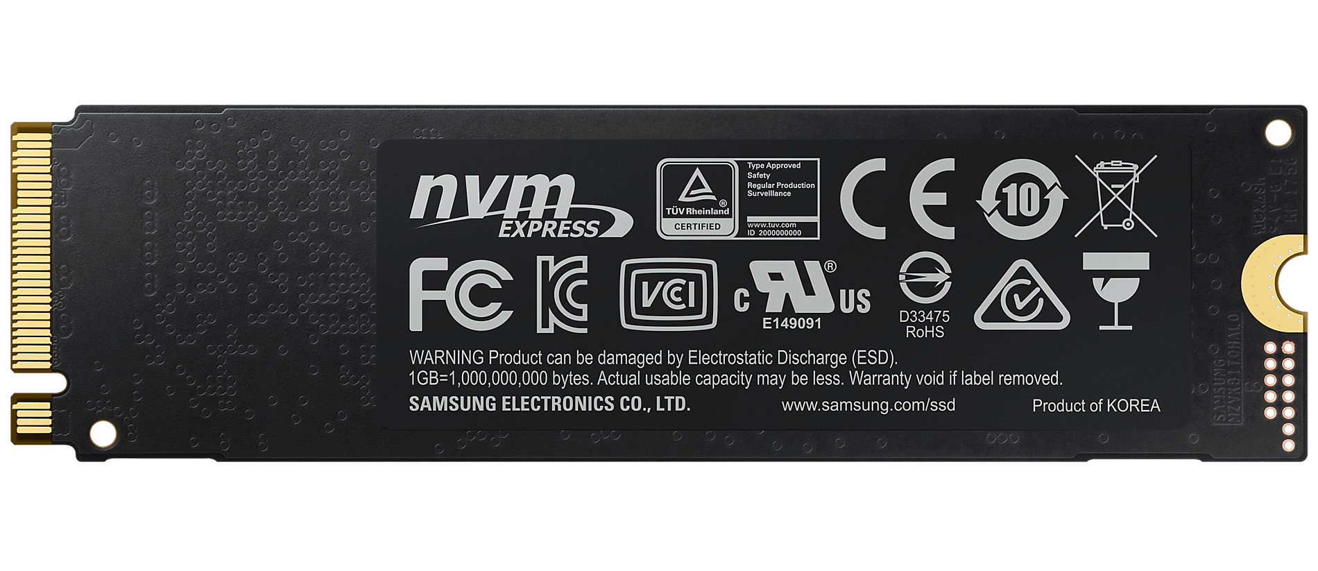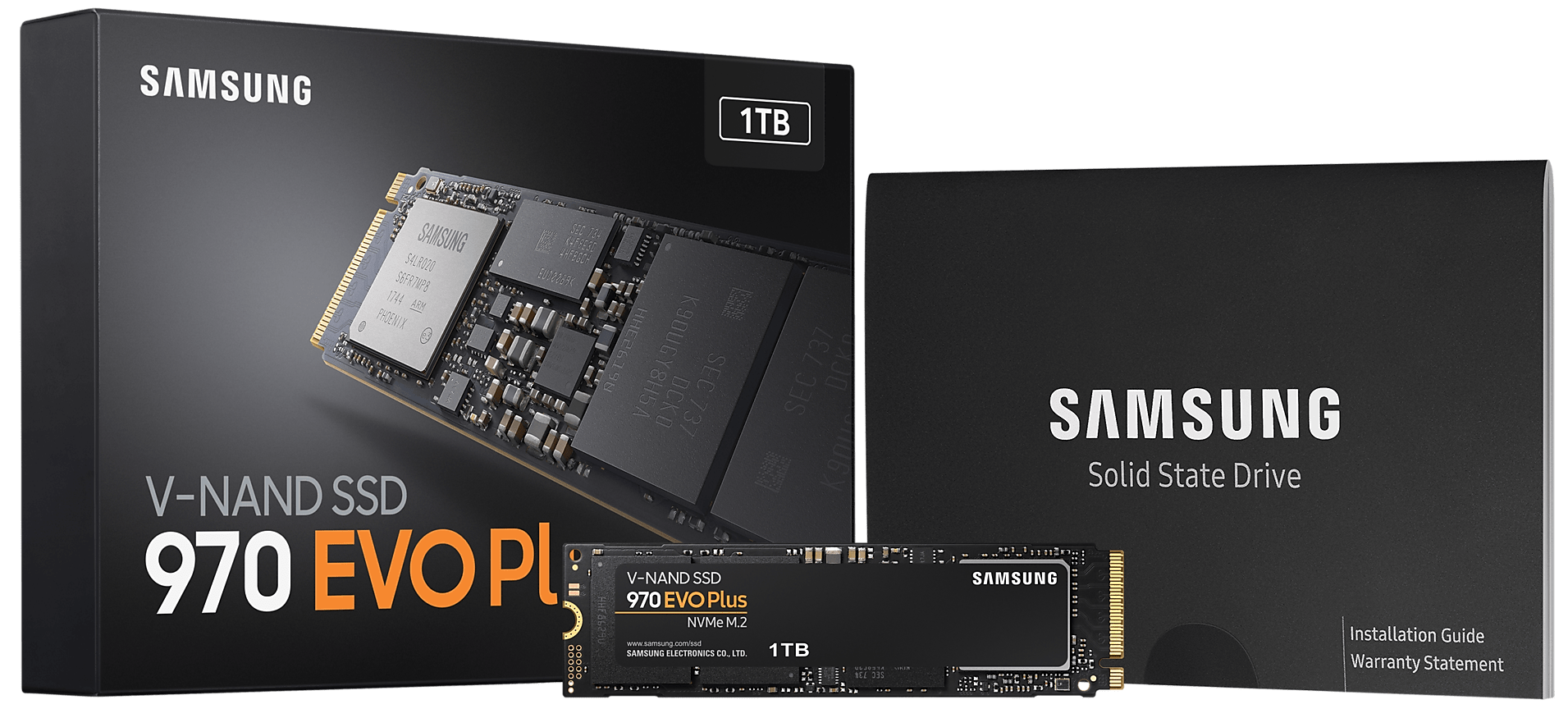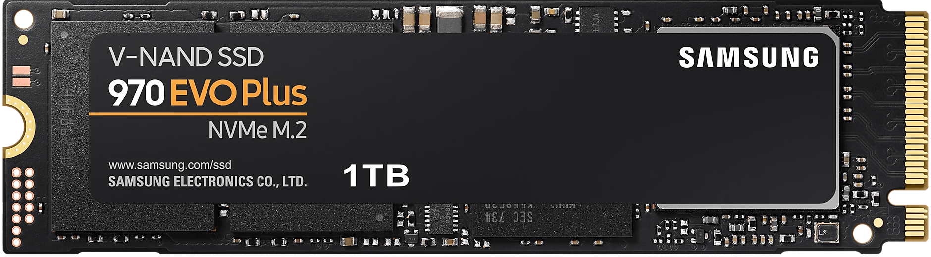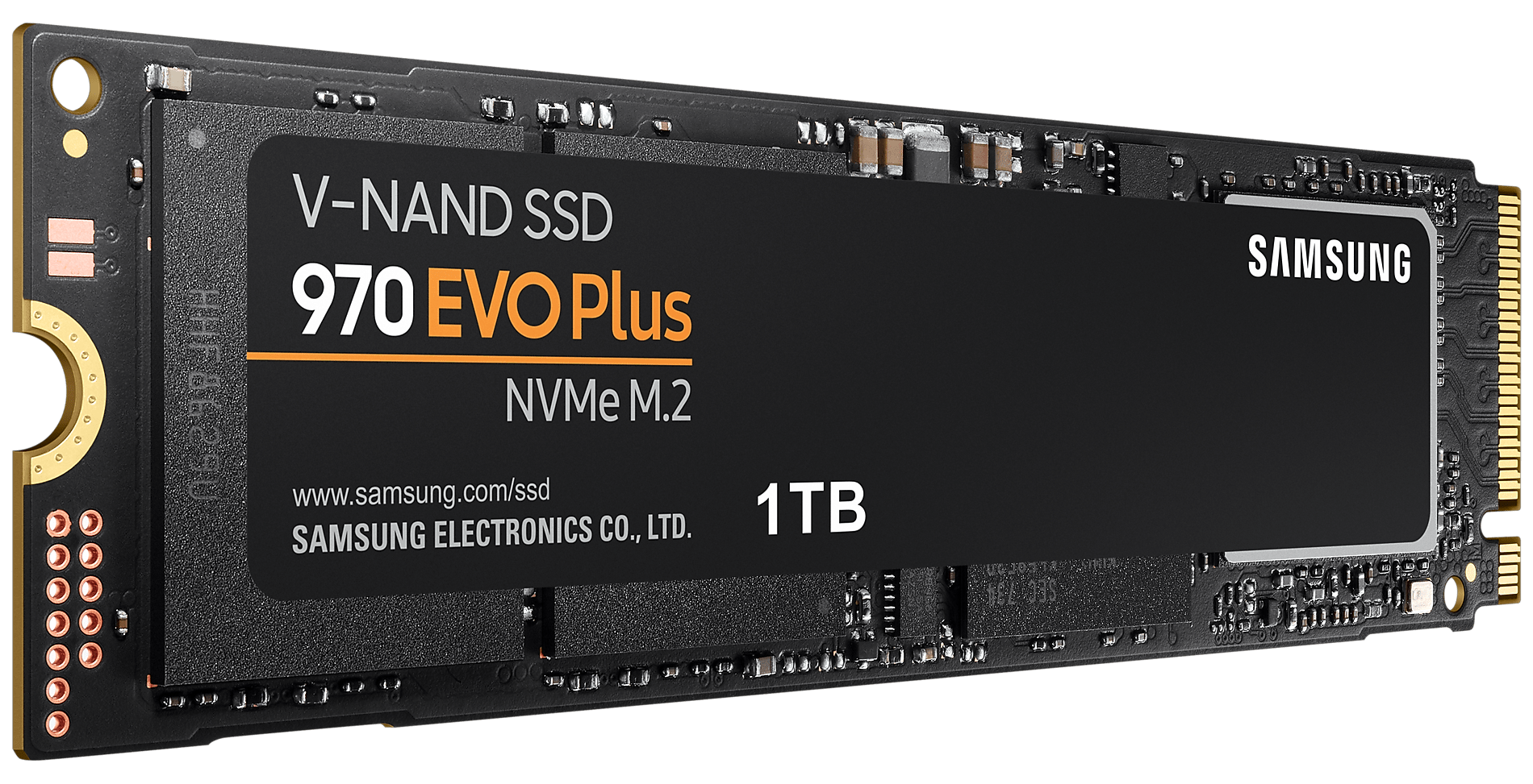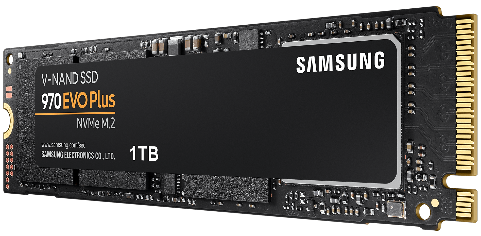 Твердотельный накопитель 1 ТБ SSD Samsung 970 EVO Plus – устройство экстра-класса, которое способно обеспечить решение задач серьезнейшего уровня. Накопитель, соответствующий форм-фактору M.2. Необходимо лишь наличие разъема M.2 и поддержка технологии NVMe. SSD Samsung обеспечивает скорость последовательного чтения, пиковое значение которой составляет невероятные 3500 МБ/с. Максимальная скорость последовательной записи равна 3300 МБ/с. Ресурс накопителя оценивается производителем в 600 TBW. Энергопотребление накопителя может достигать лишь 9 Вт. Компоновка чипов памяти – односторонняя.