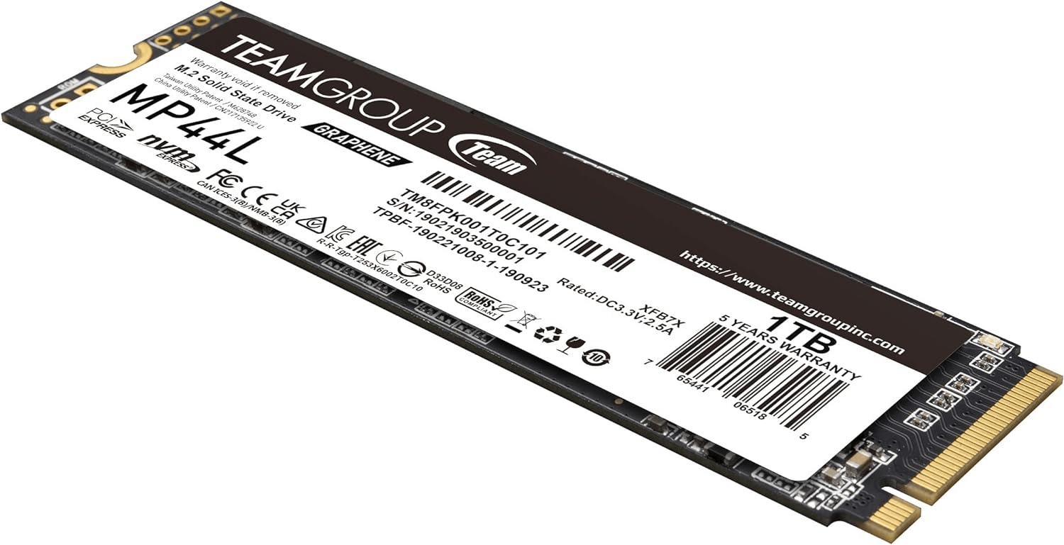M.2 накопитель Team Group MP44L – ультратонкое запоминающее устройство для совместного использования с настольными ПК и ноутбуками. Благодаря контроллеру с интерфейсом PCI Gen 4x4 и технологии 3D TLC NAND твердотельный накопитель демонстрирует скорость в пределах 5000 Мбайт/сек. SSD-диск Team Group MP44L обладает объемом 1000 ГБ и позволяет надежно хранить большое количество различного контента. Накопитель Team Group MP44L обладает графеновым покрытием для стабильного отведения тепла. Среди особенностей модели – поддержка кеширования SLC и программа для управления средствами S.M.A.R.T.